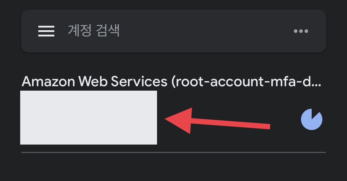 위에서 설치한 앱으로 그 코드를 스캔해주면 앱에서 MFA 코드가 생성되는것을 볼 수 있음.