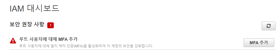IAM을 생성하기 전에 먼저, 나는 Root 사용자에 대해 MFA를 추가해줬다.