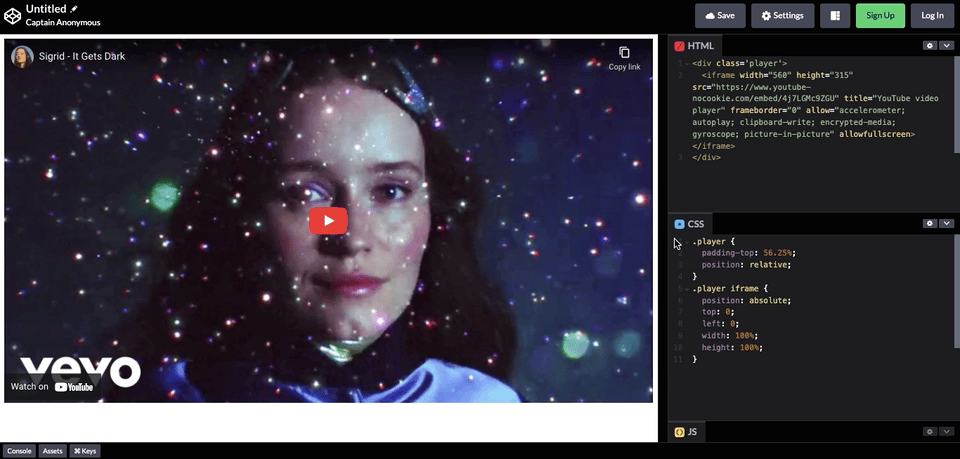 나는 CSS를 이용하여 반응형으로 만들기 위해 div로 iframe 태그를 감싸주고 player 라는 class 이름을 붙여줬다.